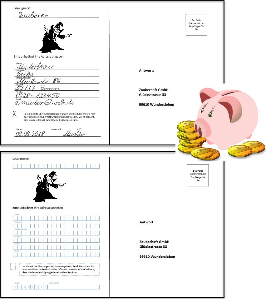 Eine clevere Gestaltung dieser Antwortkarten hilft deshalb, den Kunden im Vorfeld zum vernünftigen Ausfüllen zu bewegen und dadurch bei der Erfassung im Nachhinein Kosten zu sparen.